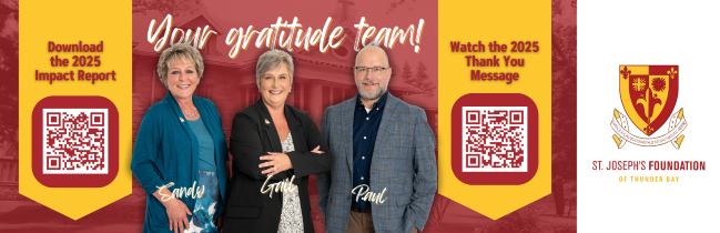 If you wish to arrange a gift annuity through St. Joseph's Foundation, please reach out to Gail Brescia at 807 768 4402for more detailed information.